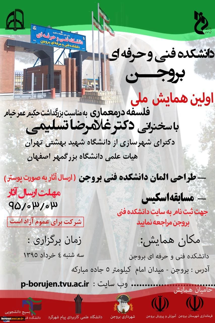 امتیاز دهید : اولین همایش ملی فلسفه در معماری در دانشکده فنی و حرفه ای پسران بروجن 2 سهشنبه 28 اردیبهشت 1395 ساعت 16:12