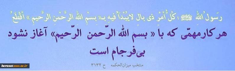 امتیاز دهید : قال رسول الله (ص): هر کار مهمی که با (( بسم الله الرحمن الرحیم )) آغاز نشود بی فرجام است. منتخب میزان الحکمه ح 3132 2 شنبه 12 تیر 1395 ساعت 8:54